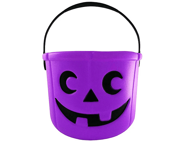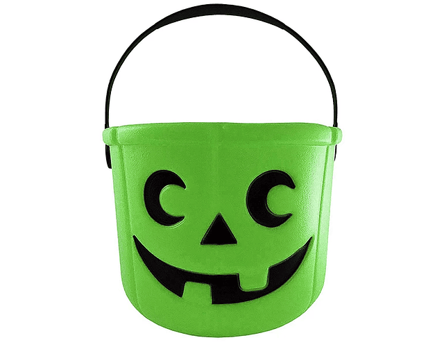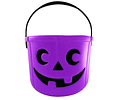 Balde plástico de18x13 cms. aprox. con cara de calavera, ideal para pedir dulces en este halloween.
